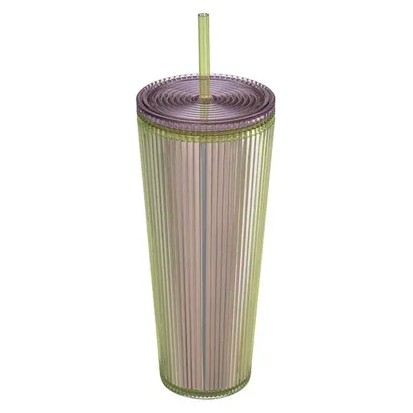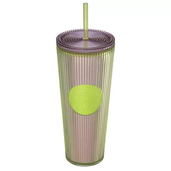 24oz Green Pleated / Striped Straw Cup Taiwan Sakura Spring 2025